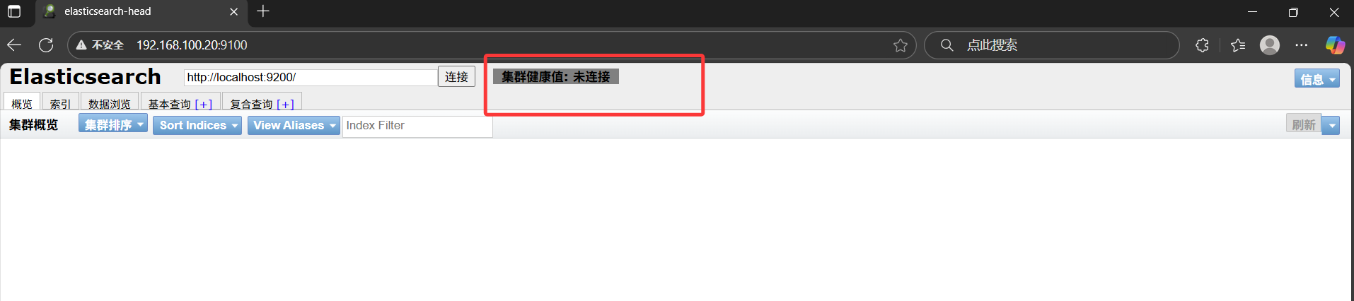 通过curl或浏览器访问http://ip:9200/_cat/indices?v