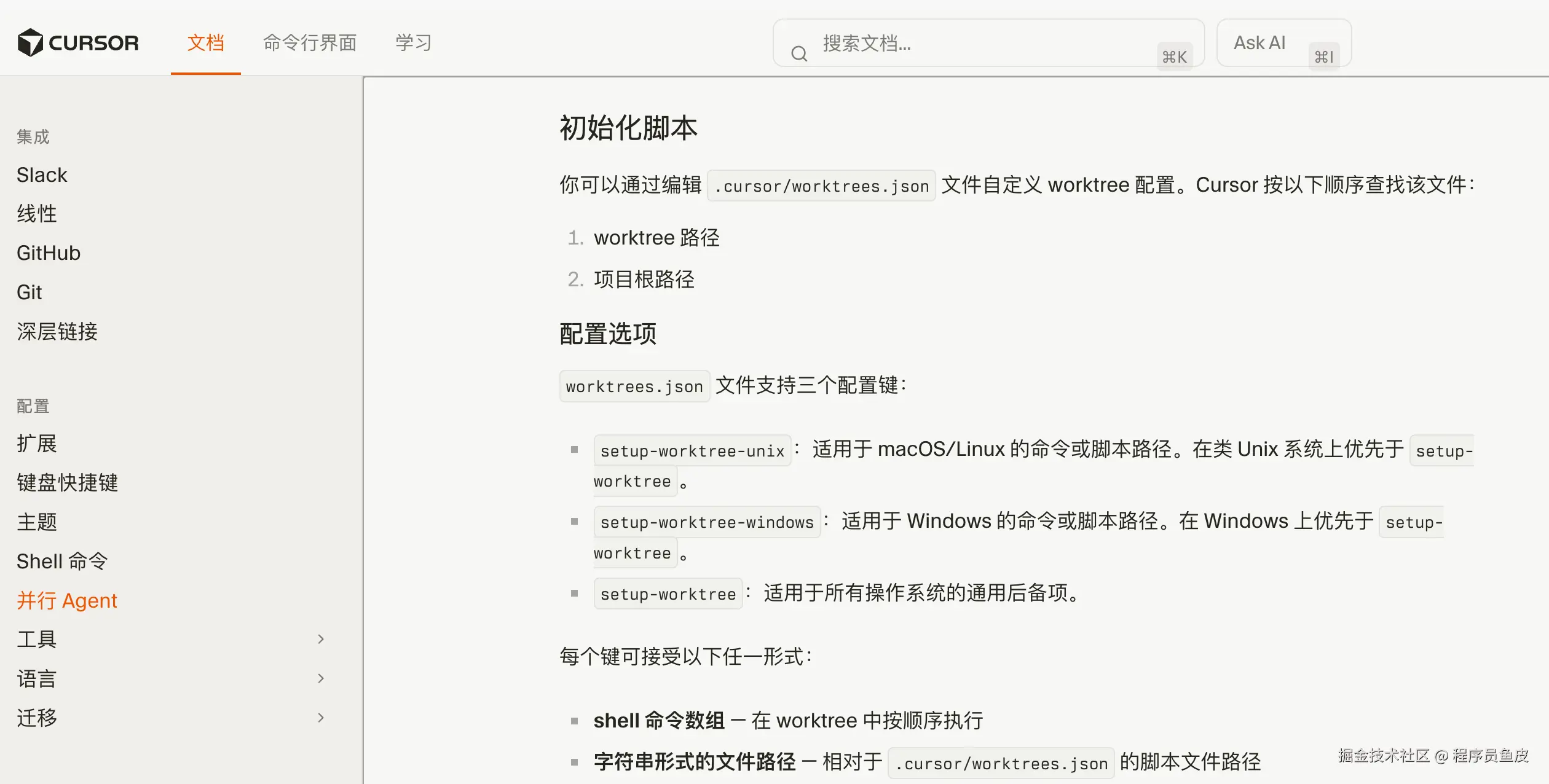 还有个小细节,默认创建的 worktree 只有代码文件,没有 node_modules 等依赖。如果你的项目需要,可以配置一下初始化脚本,让每个 AI 工作区都自动装好依赖、配置好环境,而不只是光秃秃的代码。