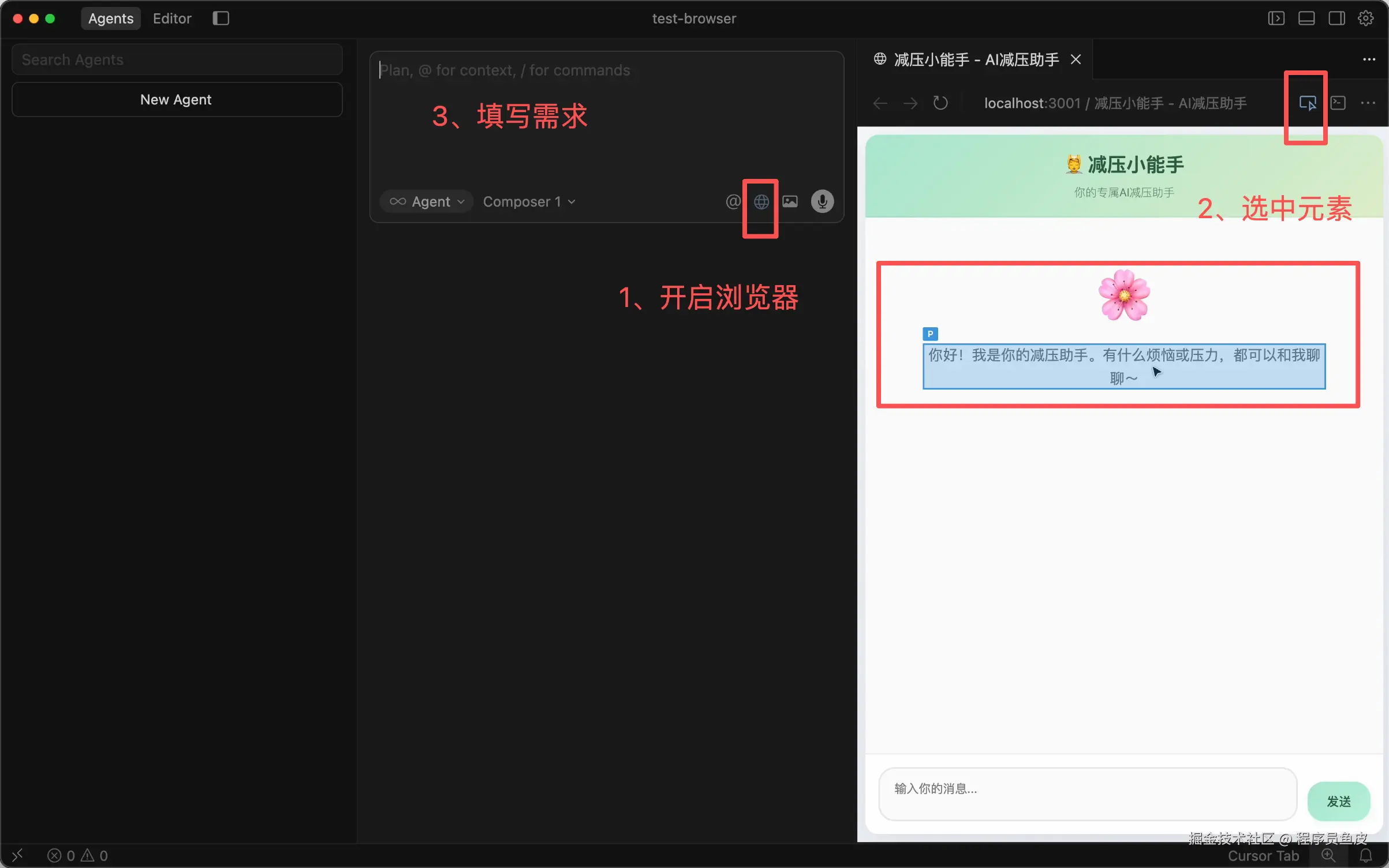 直接在浏览器里点击某个元素,提出你的需求,AI 就能帮你改对应的代码。点哪儿改哪儿,不用再去代码里找、而且修改更精确。