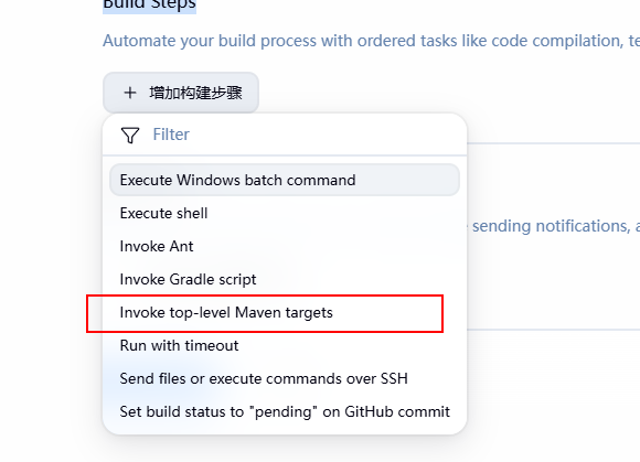 选择好了之后拉到下面,有个 Build Steps ,这个就是主要的操作步骤了。
