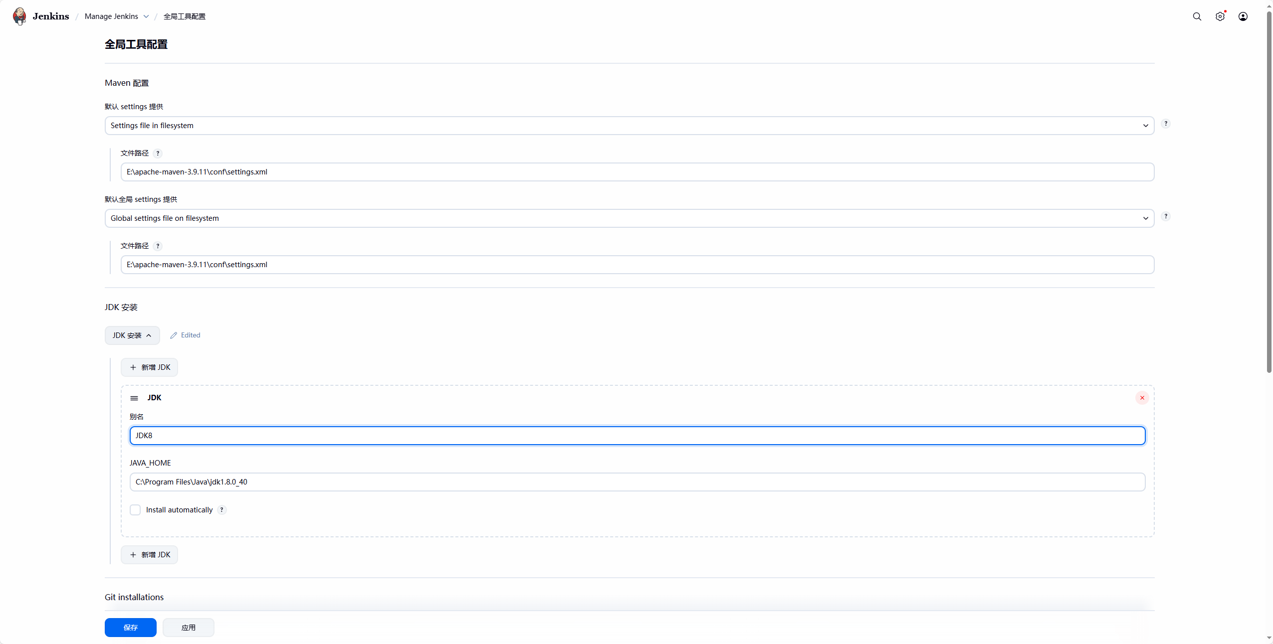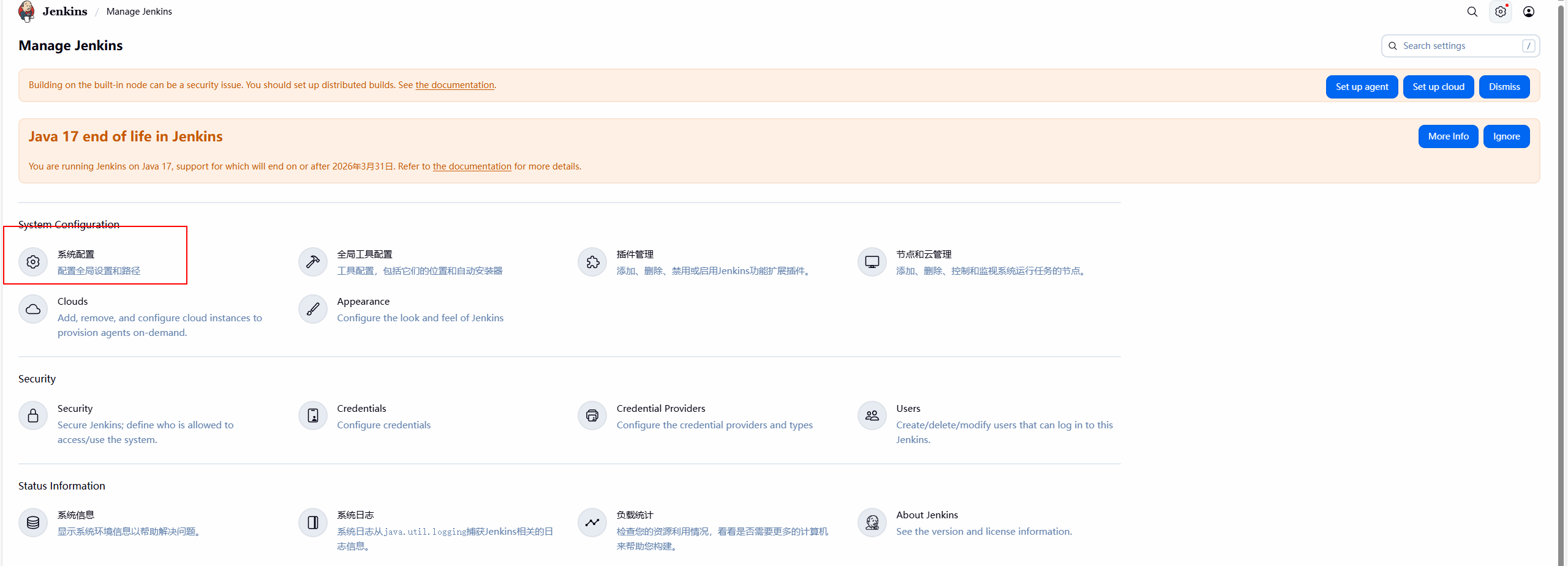 主要配置 jenkins相关配置、SSH Servers连接凭证 等。