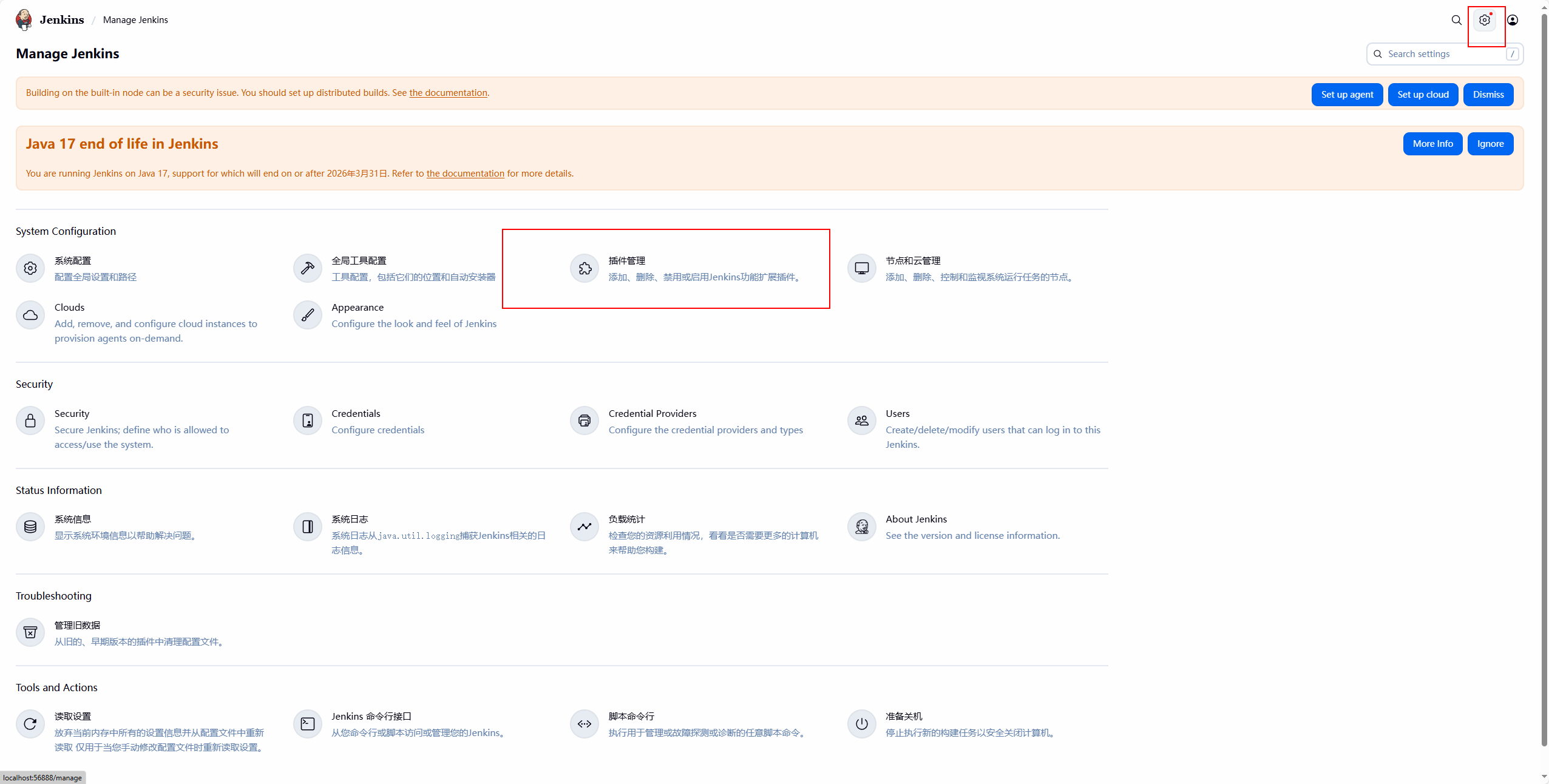 Jenkins本身是不支持SSH连接的,但是有插件可以。我们打开插件管理: