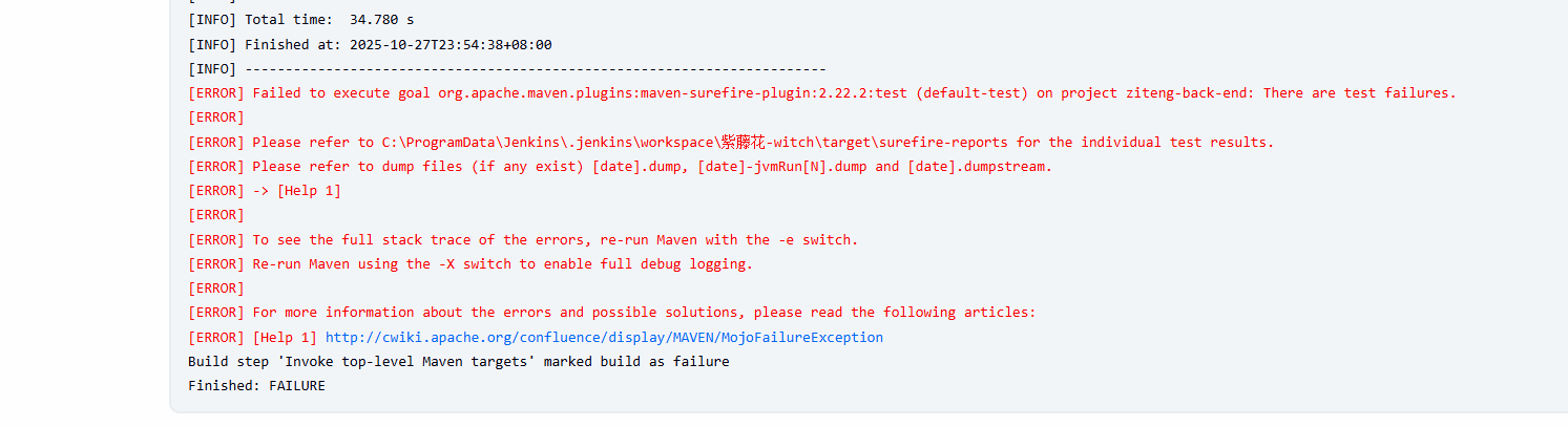 比如我这个是test测试类报错了,那我们可以考虑修复test,或者maven - clean - install 的时候跳过测试类等等。
