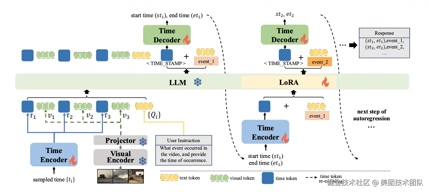 为了解决这些问题,我们引入了DisTime,这是一种轻量级框架,旨在增强视频大型语言模型的时间理解能力。DisTime使用单个可学习的时间标记来创建一个连续的时间嵌入空间,并结合基于分布的时间解码器,生成时间概率分布,有效缓解边界模糊性并保持时间连续性。此外,基于分布的时间编码器重新编码成时间戳,为视频大型语言模型提供时间标记。为了克服现有无监督数据集中的时间粗粒度,我们提出了一种自动化标注模式,将视频大型语言模型的描述能力与专用时间模型的时序定位相结合。这促进了InternVidTG的创建,这是一个包含17.9万个视频和125万个时间定位事件的大型数据集,是ActivityNet-Caption的55倍。大量实验表明,DisTime在三个不同的时间敏感任务的基准测试中达到了最先进的性能,同时在视频问答任务中保持了竞争力。