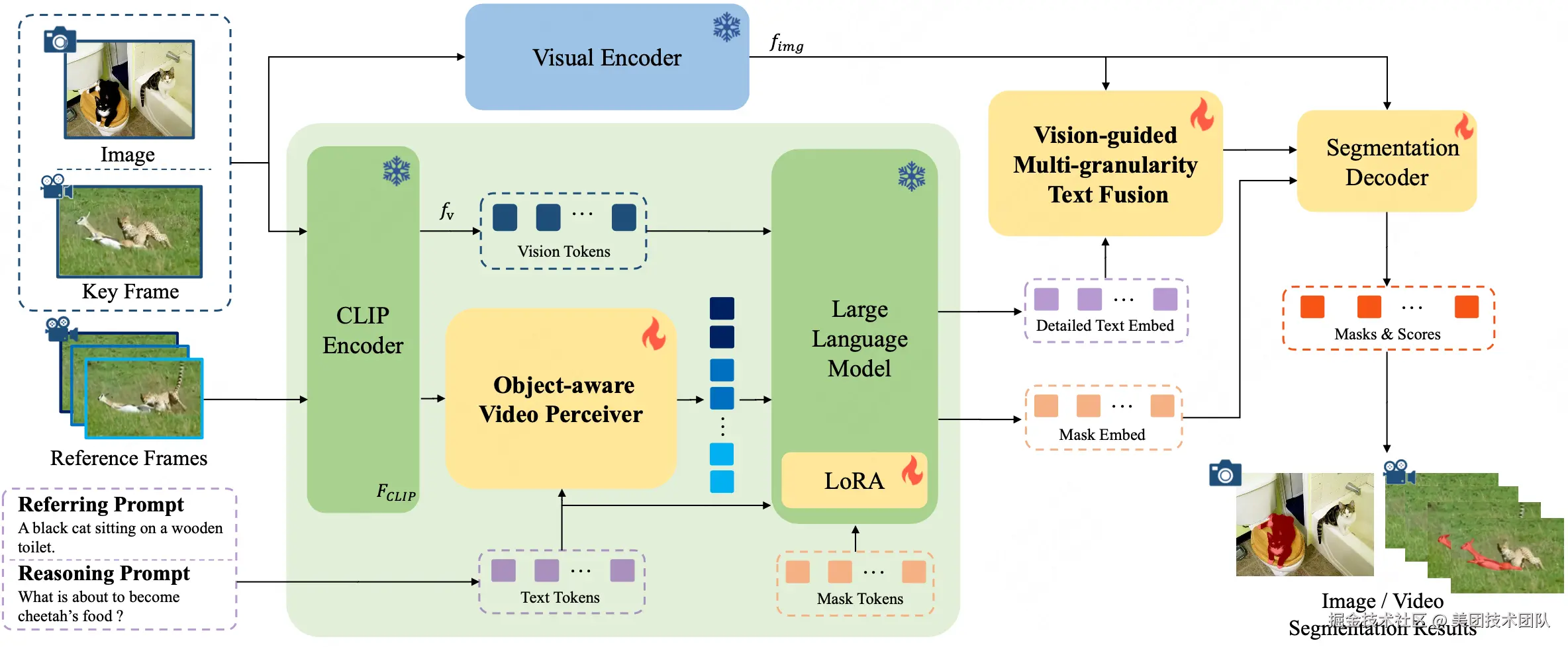 论文简介:受多模态大型语言模型 (MLLM) 推动,用于图像和视频领域的文本引导通用分割模型近年来取得了快速发展。然而,这些方法通常是针对特定领域单独开发的,而忽略了这两个领域在任务设置和解决方案上的相似性。本文首先把图像和视频级的参考分割和推理分割的统一归到指导视觉分割 (IVS)框架下,并提出了 InstructSeg,一种专用于 IVS任务 的 基于MLLM 的端到端分割模型。InstructSeg利用目标感知的视频感知器从参考帧中提取时间和目标双重信息,从而提升模型的视频理解能力。此外,我们引入了视觉引导的多粒度文本融合,更好地将全局和细节的文本信息与细粒度的视觉引导相结合。通过利用多任务和端到端训练,InstructSeg 在各类图像和视频任务中表现出色,仅通过单一模型超越了以往的分割专家模型和基于 MLLM 的方法。