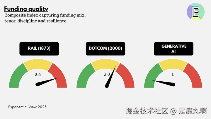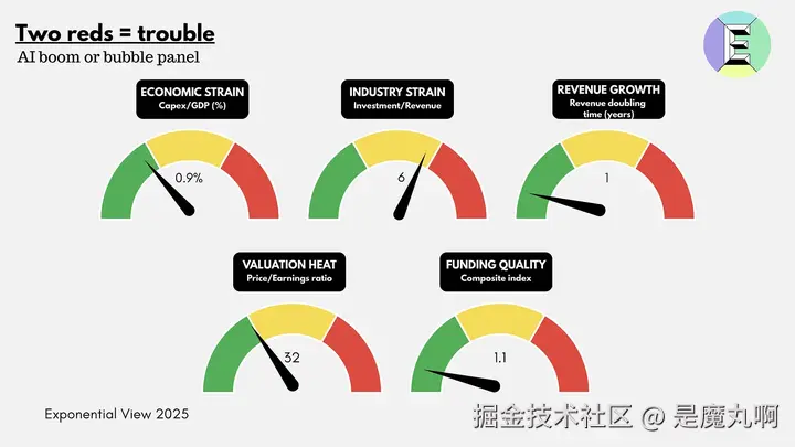 目前,我的仪表盘是偏绿色。我们还没到泡沫领域,但如果融资在未来一年继续这样爬行而没有2025年那样强劲的收入增长,它可能会转向黄色。