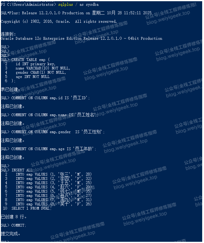 # 作业 "SYS"."SYS_EXPORT_TABLE_01" 已于 星期三 10月 29 16:53:13 2025 elapsed 0 00:00:11 成功完成例2.使用数据泵备份指定表及条件,将满足条件的数据导出,例如:只导出 itgeek.emp 表中 id 大于5 的数据。