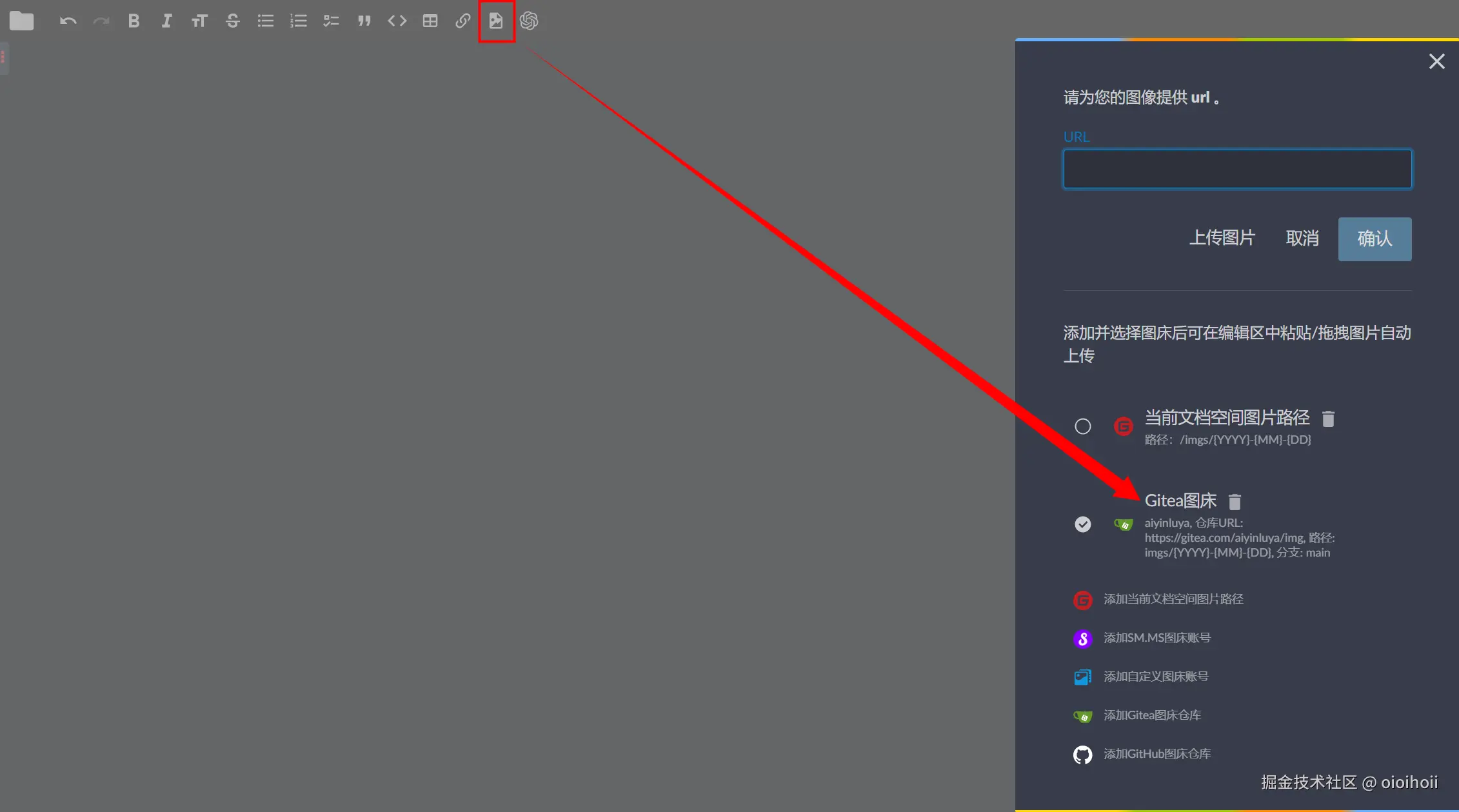 - Ctrl+V粘贴图片 → 自动上传到你的 Gitea 仓库