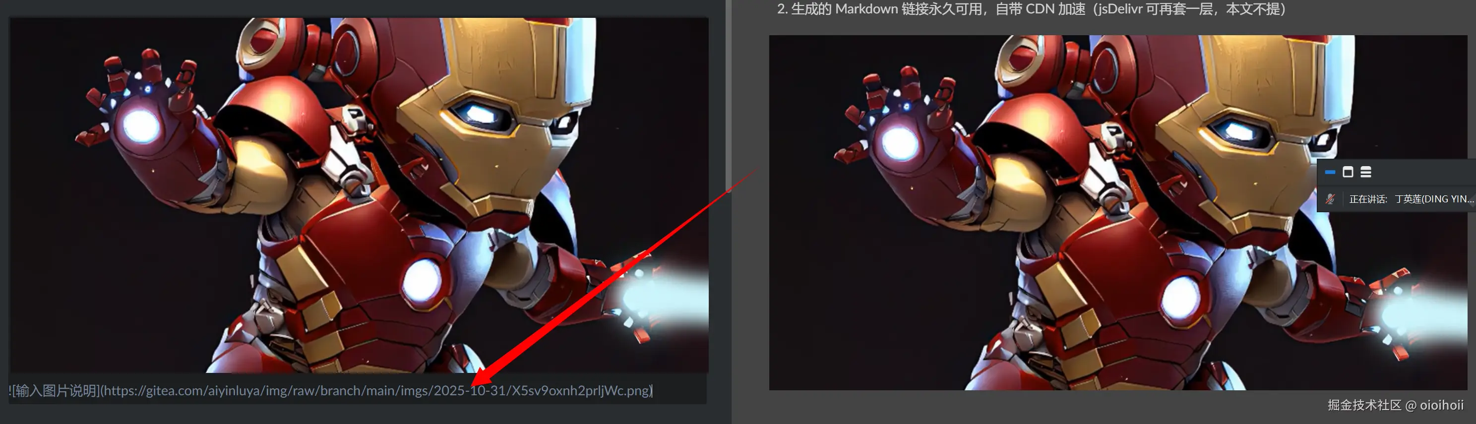 - 生成的 Markdown 链接永久可用,自带 CDN 加速(jsDelivr 可再套一层,本文不提)