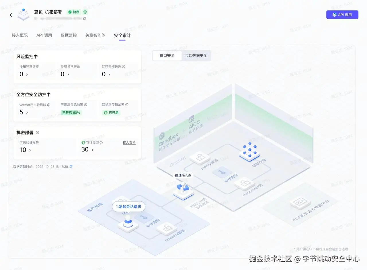 近日,火山方舟作为一站式大模型服务平台,将AICC机密计算技术原生内置于平台,在行业内率先推出MaaS原生的机密推理服务。用户在火山方舟选择"机密部署"方式,即可一键开启豆包大模型的机密推理服务。