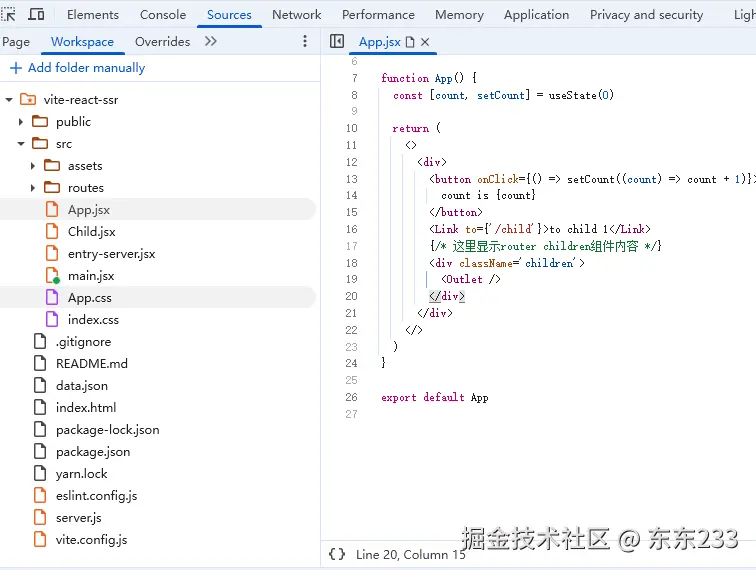 createServer()接下来实现 render 方法。在 src 目录下创建 entry-server.jsx: