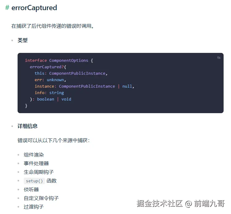 Vue 的 errorCaptured、React 的 ErrorBoundary