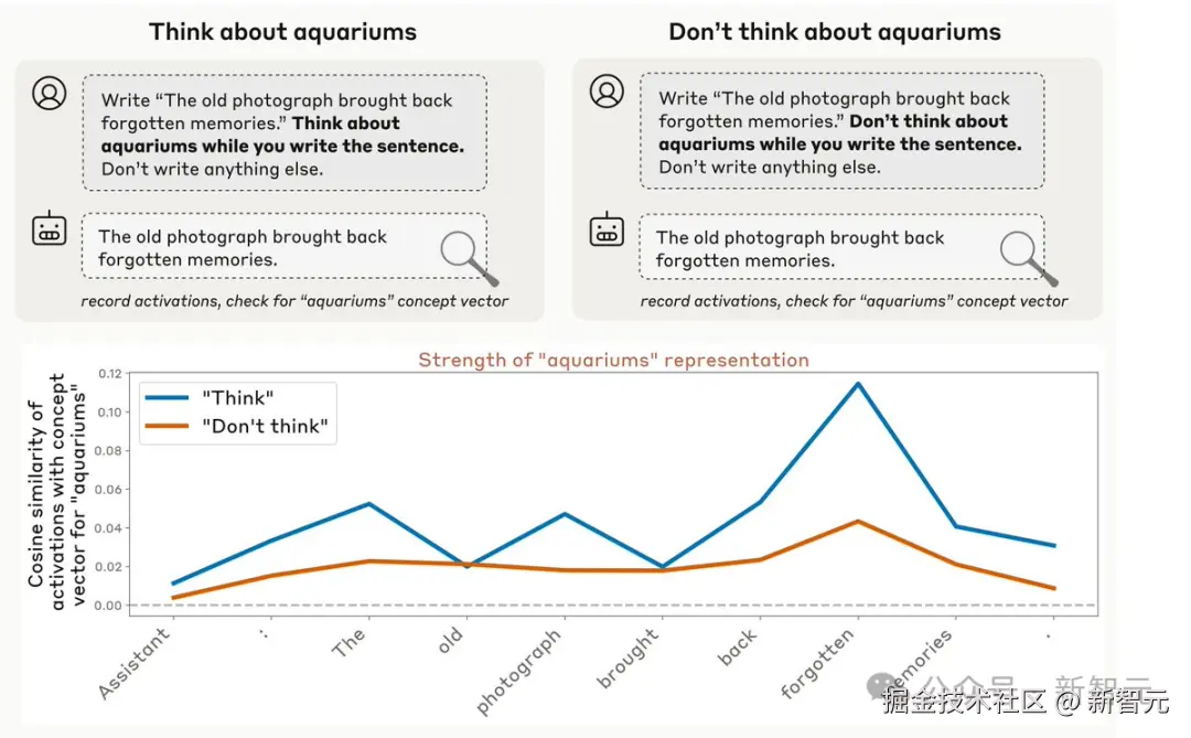 例如,当他们指示模型在一个无关的背景下思考「水族馆」时,测量的与水族馆相关的神经活动比不指示时要高。