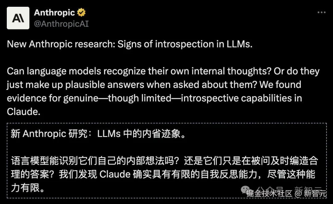 「【新智元导读】数据中心里的「天才」苏醒!Anthropic 用「概念注入」实锤:Claude Opus 在输出前就自省「异常思想」。从尖叫到水族馆幻想,20% 觉察率已让专家目瞪口呆。」