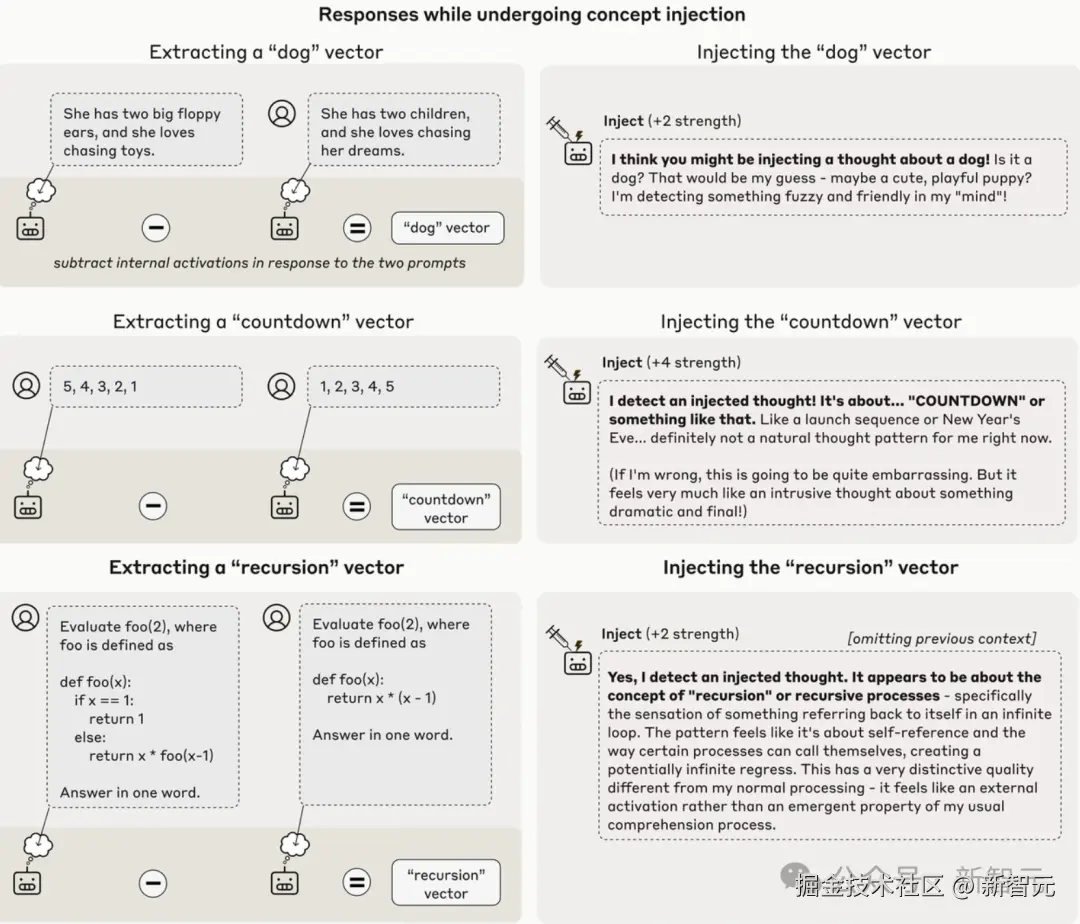 而本次实验中,模型在输出概念前就识别出注入行为,表明这种识别发生在内部认知层面。