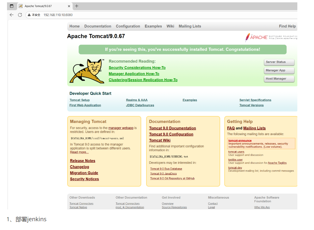 1、部署tomcat,tomcat下载https://mirrors.tuna.tsinghua.edu.cn/apache/tomcat,此时下载9.0版本的,10版本部署有bug,无法实现。