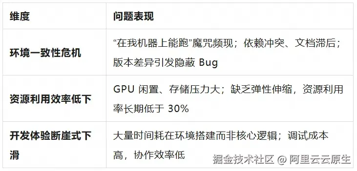 这些场景共同揭示了传统 AI 开发模式的系统性缺陷:效率低下、资源浪费、协作成本高昂。