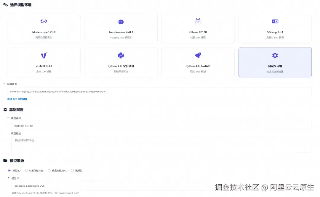 然而,要真正释放 DeepSeek OCR 的技术优势,开发者首先必须跨越一道高门槛:复杂的运行环境依赖------包括高分辨率图像处理、多模态模型推理、GPU 加速支持等。在传统开发模式下,繁琐的环境配置已成为阻碍先进模型快速落地的"拦路虎"。