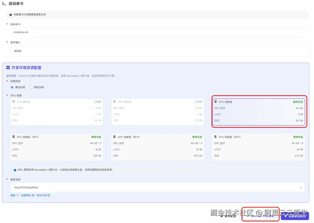 3.点击 "DevPod 开发调试" 启动环境(⚠️ 不要点"创建模型服务")。