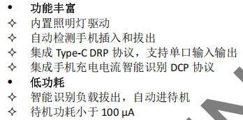 - 集成Type-C DRP协议,支持单端口输入输出自动切换,兼容Try.SRC功能,可优先为对方设备充电。