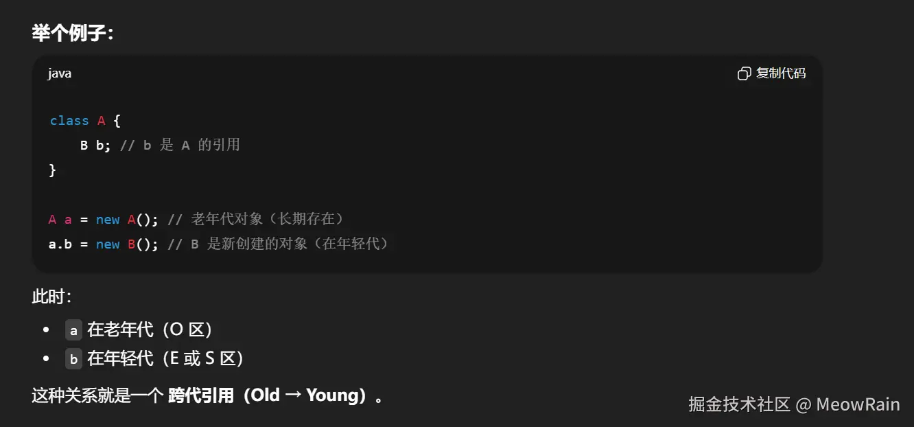 所谓的 跨代引用(Cross-Generational Reference) 就是: