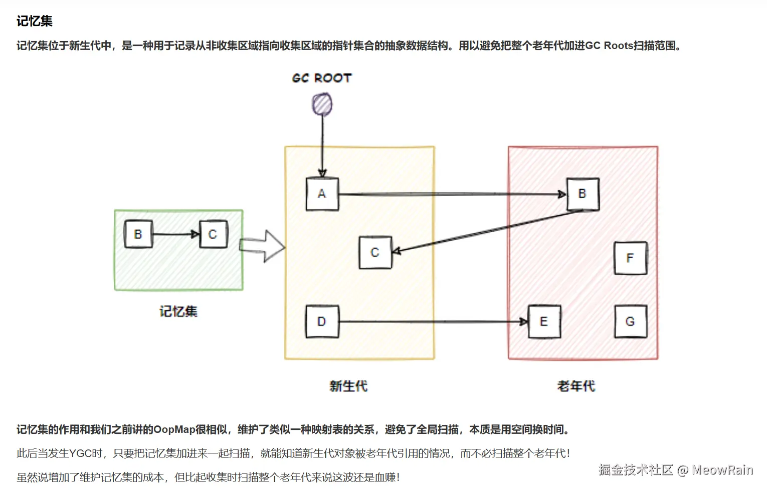 - 如果每次年轻代 GC 都去全量扫描老年代,会导致性能灾难。