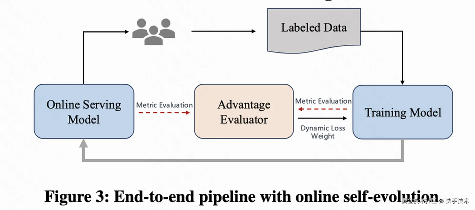其中代表了评估模型效果的评估指标,针对不同的业务问题可以尝试不同的指标,本次我们也将在消融实验本分进行简单的讨论。分别代表当前模型和旧模型。由于模型实时训练,可以保存模型在线预估的结果作为而无需保存旧模型版本。