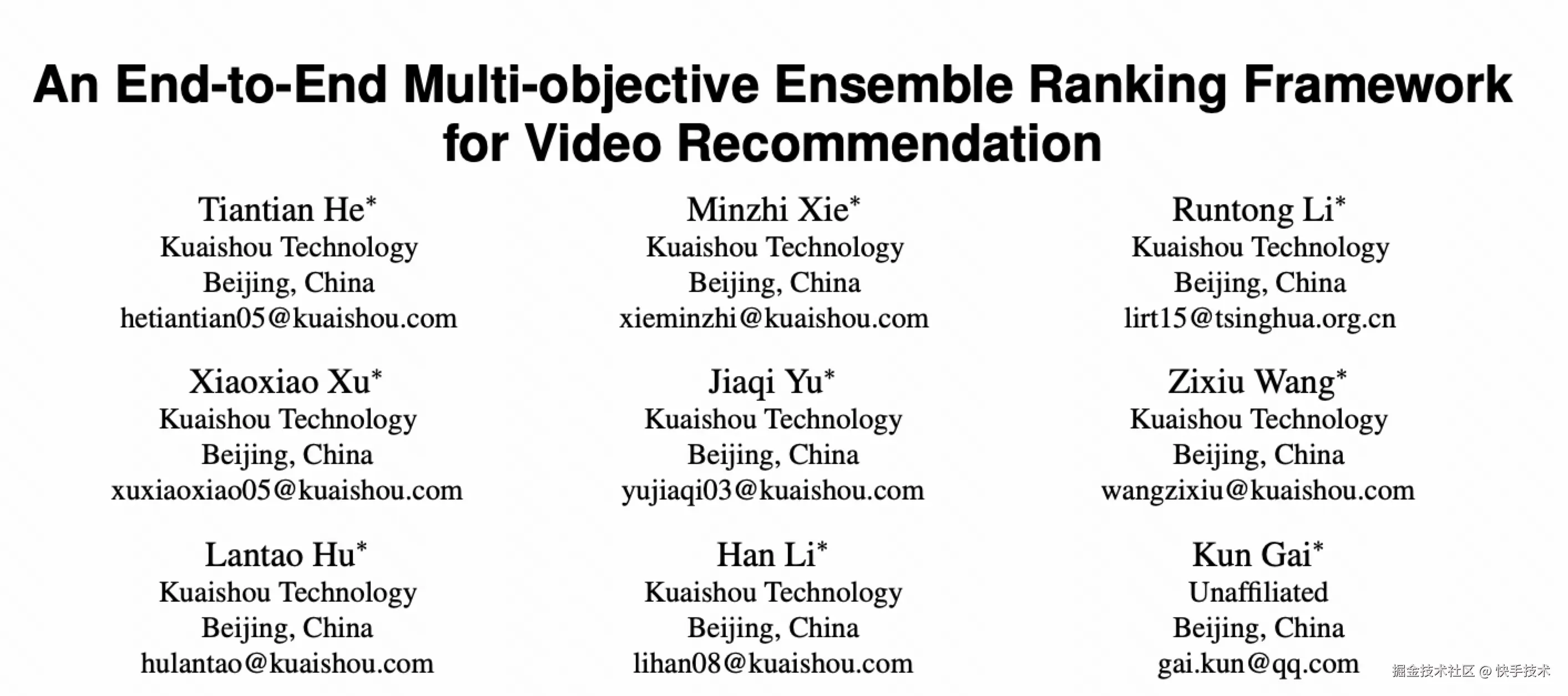 论文题目:An End-to-End Multi-objective Ensemble Ranking Framework for Video Recommendation