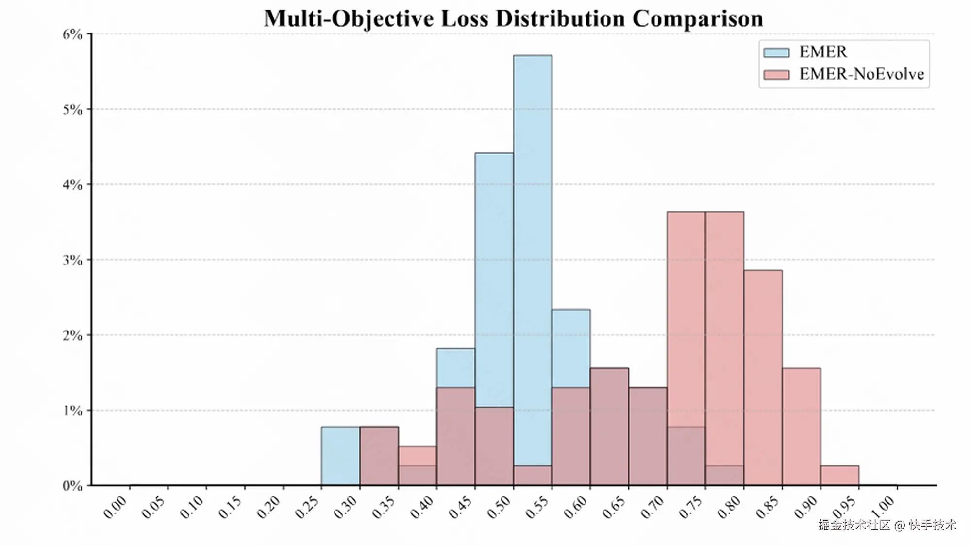 图 1:loss 分布比较:EMER vs. 消融版本 EMER-NoEvolve