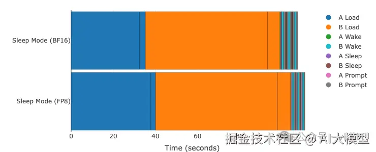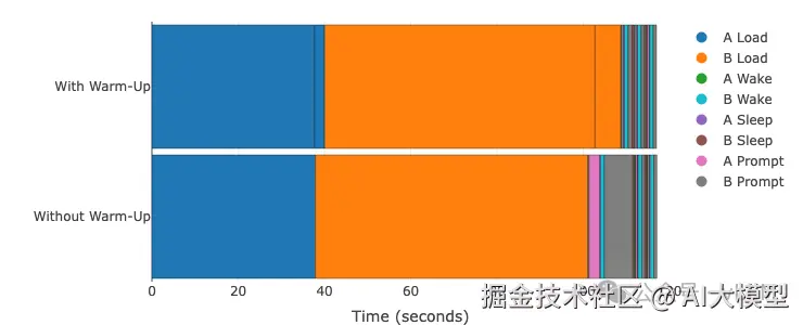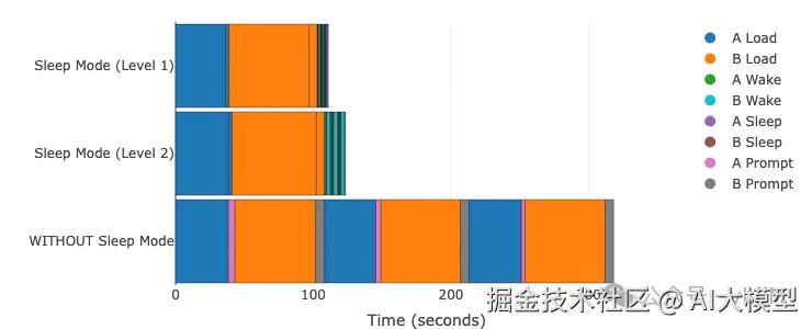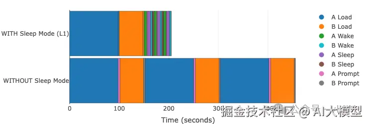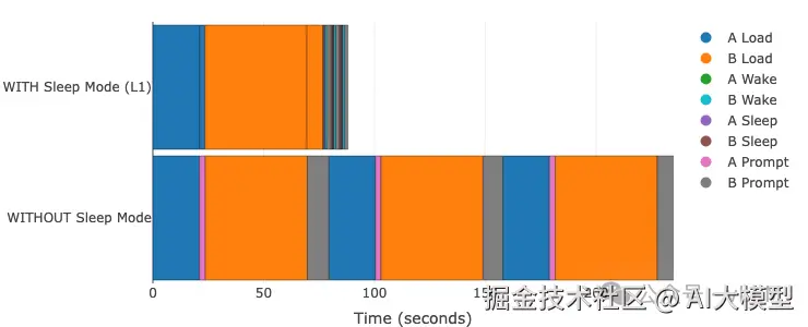 使用睡眠模式: 模型在切换间休眠/唤醒,保留基础设施。 不使用睡眠模式: 每次切换需要完整的vLLM重启和重载。