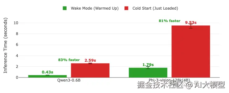 - • 结果: 首次推理慢4-7倍(见基准测试:0.92秒唤醒 vs 3.72秒冷启动)
