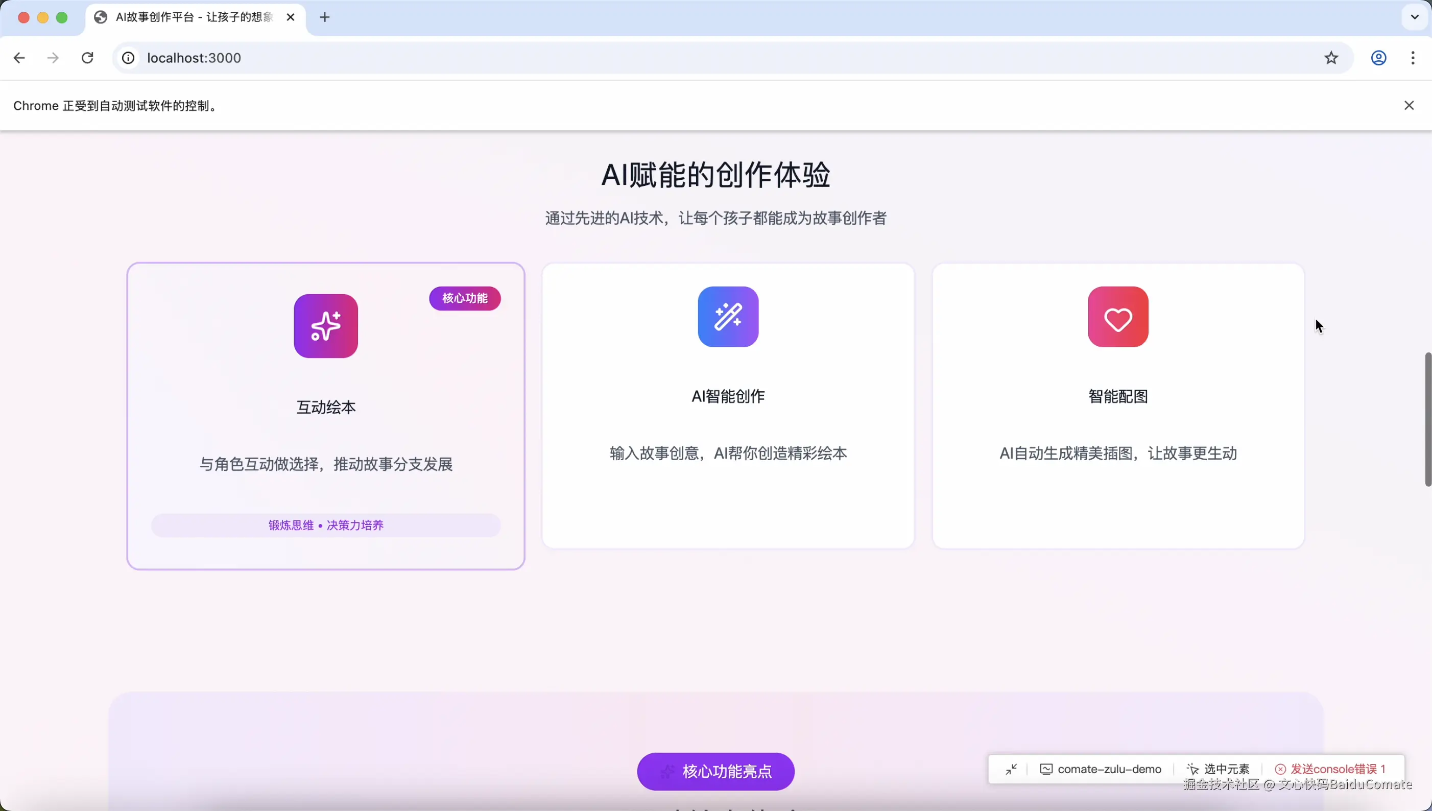 A: 对于数据开发来说,没有任何前端经验,需要全程使用文心快码,好在刚上手不到半小时就搭建了一个完整的服务,而且工具在后续的页面修改、接口联调中都表现得很好。首先从页面生成来说,只用上传画好的设计图或者口头表达想要的页面效果,AI就能听懂你的指示并且立马实现。然后在代码调试阶段,Comate还有一个非常方便的功能,选中生成页面中的元素,直接向控制台发送,不用再费劲描述想要调整的板块。对于接口联调,只需要写清楚接口说明和简单的接口样例,AI就能调用接口返回的结果,展示在页面中。