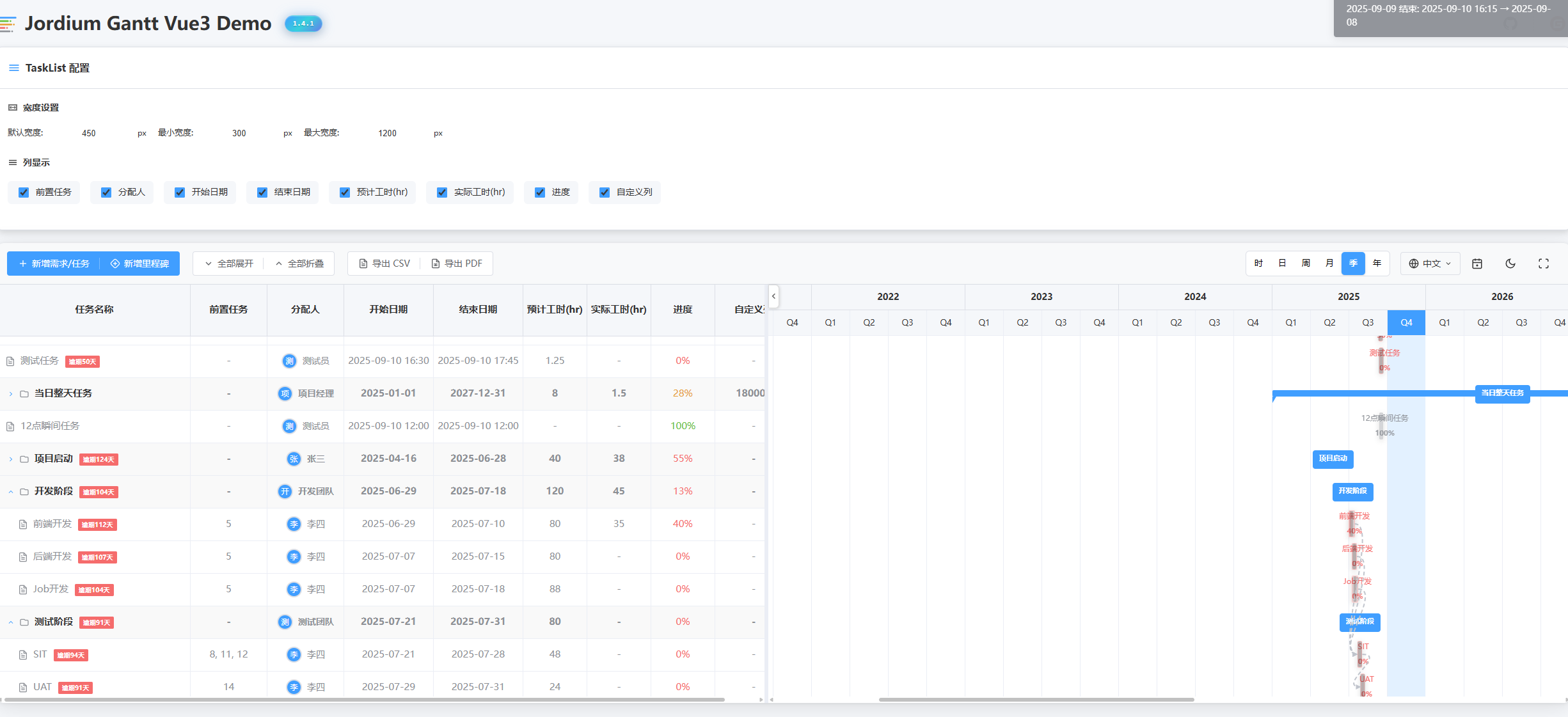 3. 国产中文友好:jordium-gantt-vue3(刚刚迭代到 v2,文档全中文)
