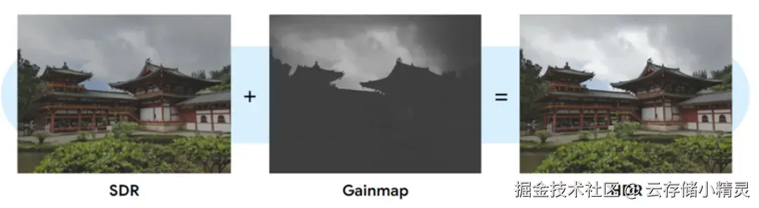 支持 HDR 的设备会自动把两层叠回真实效果;不支持 HDR 的设备则只展示主图,不至于花屏。  很明显,Gainmap的方案非常适合安卓和苹果这种角色选择。