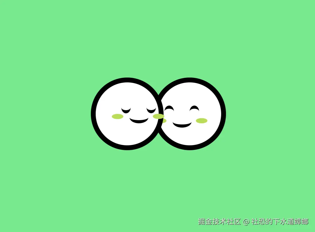 大家好,今天给大家分享一个用纯 CSS 实现的趣味互动动画 ------ 两个卡通小球从对视到亲吻的甜蜜过程。整个动画不需要一行 JavaScript,仅通过 CSS 关键帧和变换属性就能实现流畅自然的互动效果。话不多说,先看看最终效果(建议配合代码食用):