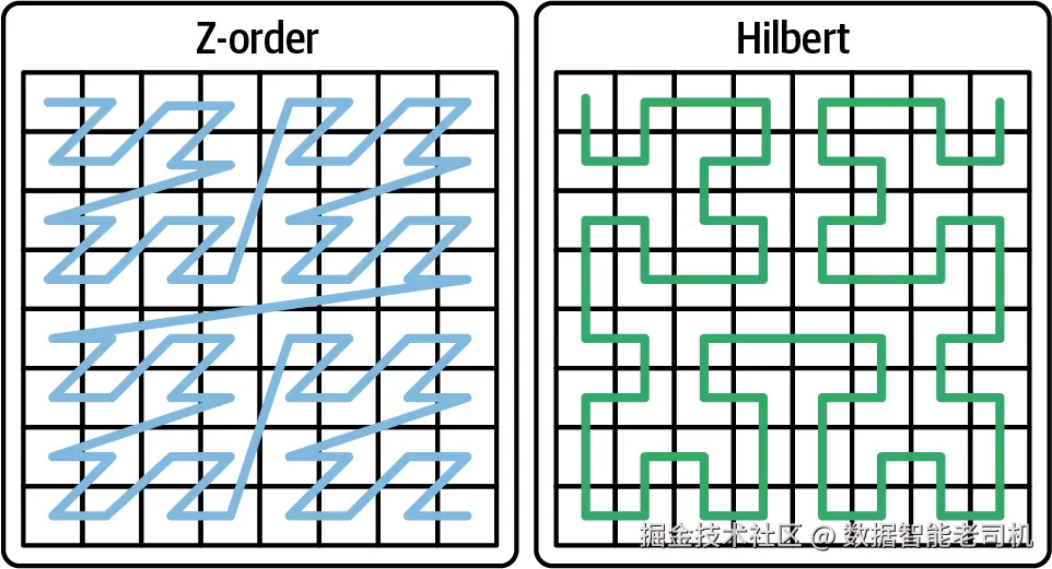 通过将 hoodie.layout.optimize.strategy 设为 ZORDER 或 HILBERT,即可指示聚类过程按这些高级算法排序,使多维空间中彼此接近的记录在磁盘上也物理相邻,进而高效支持范围/半径类查询。