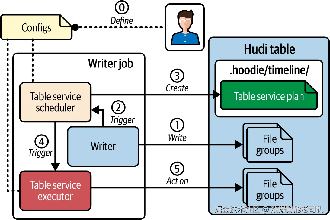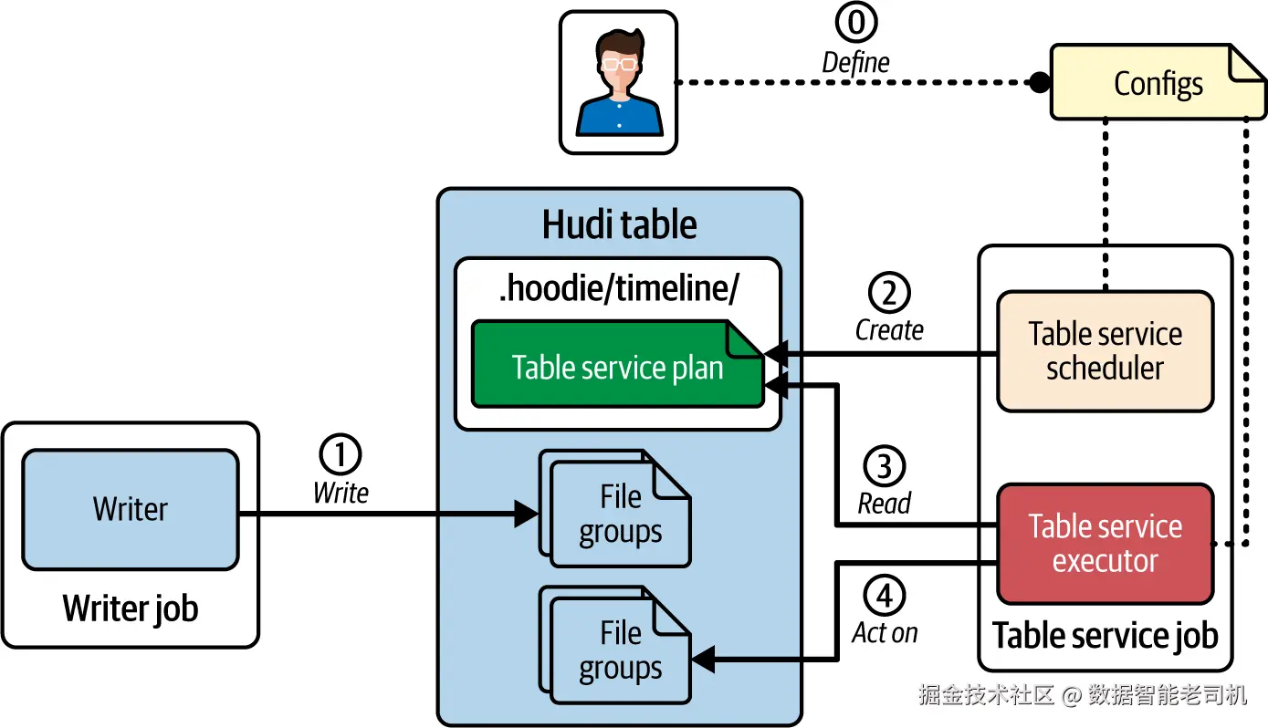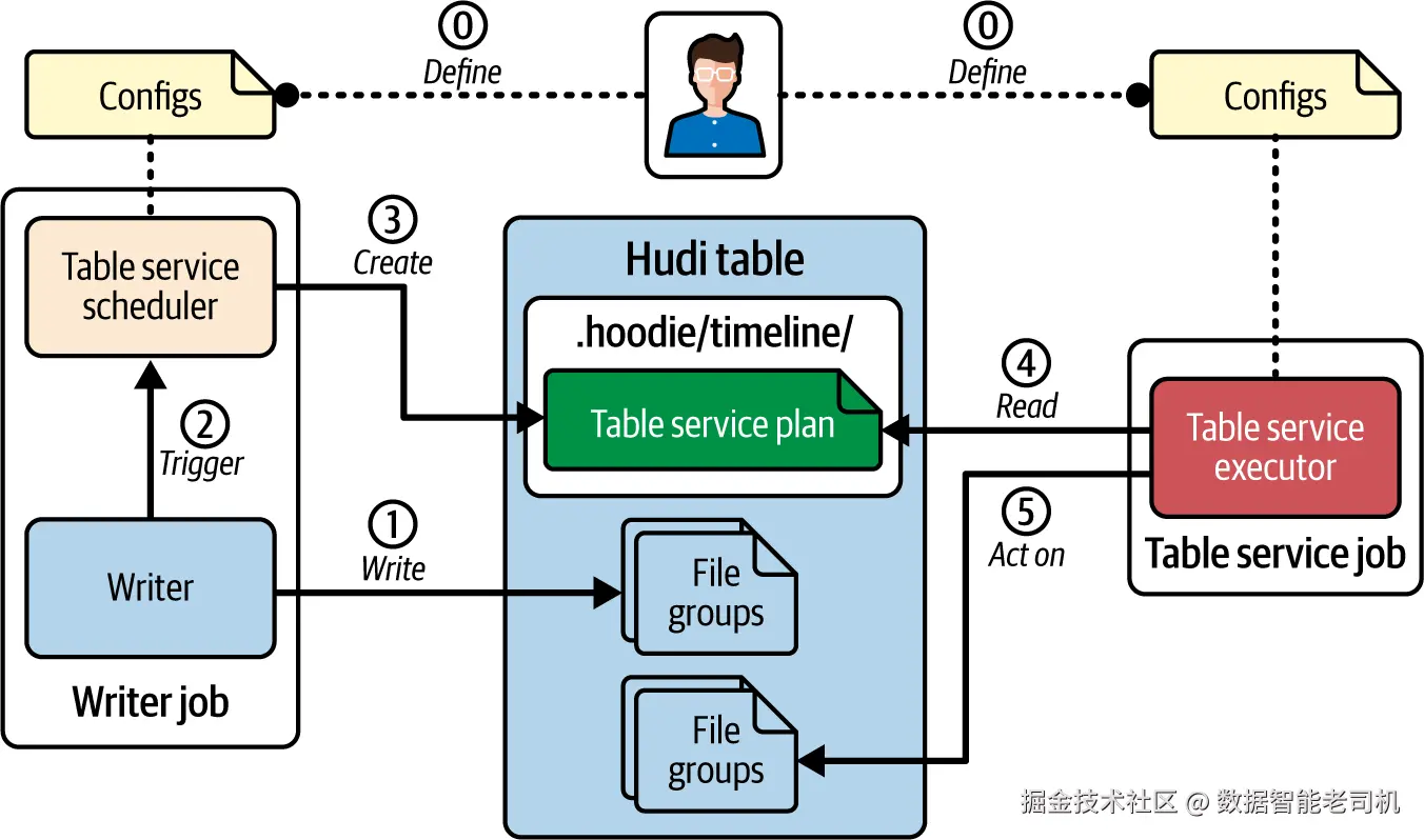 理解这些取舍后,你就能选出最契合自身运维与数据处理需求的模式。接下来各节将详细介绍 Hudi 的四大表服务。对每种服务,我们会说明其目的与机制,给出 inline 模式的示例配置,并指向官方文档获取更多样例。