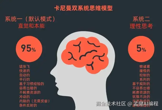 人的大脑进化是为了生存,所以遵循能量最小消耗原则------能不动脑就不动脑,默认使用系统 1 思考。