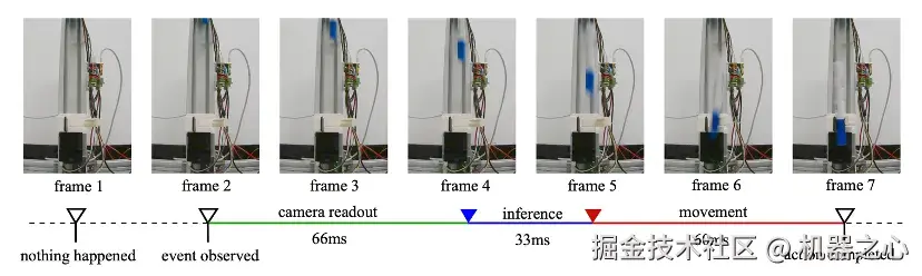 最终呈现的效果是 从 "看到笔" 到 "执行抓取" 的端到端总反应时间被缩短到 200 毫秒以内,这大概对应到一个 30 cm 左右的最短下落距离。而人类在这个任务上的一般表现也不过如此。