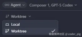 😄 发布一个任务后,你可以同时启动多个 Agent 来解决这个问题。Cursor 利用 Git worktree /远程机隔离 为每个 Agent 创建了独立、干净的工作空间,它们可以自由修改代码,互不干扰。