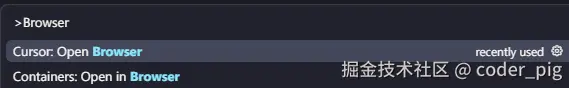也可以 Ctrl + Shirt + P 进入控制面板,输入 "Browser ",找到 "Cursor: Open Browser" 选项: