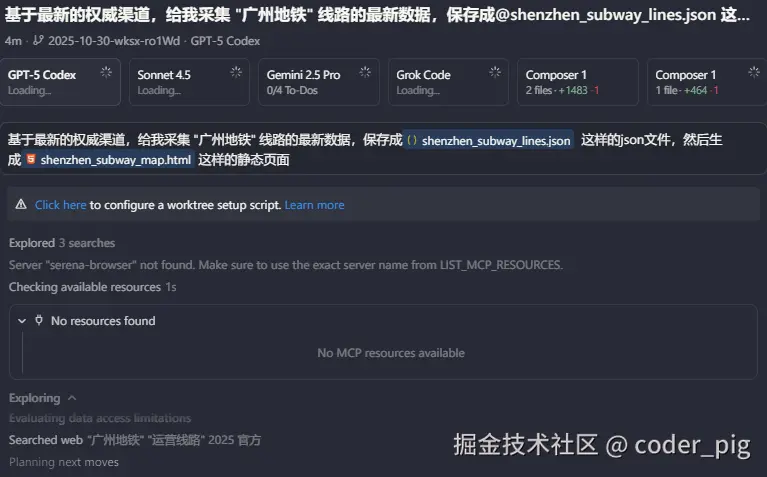 👏 Composer 1 速度真不是盖的,一骑绝尘,Codex 还在 planing,它已经把活干完了。Codex 是真的 "苟" 啊 (不确定的事我不做,不做就不会犯错🤣):