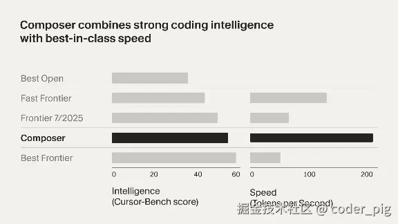 面向 "代理式 (agentic) 编码 " 场景,主打 "极低延时 " 和 "多步骤任务执行 ",并与 Cursor 的 "多智能体工作流 " 深度集成。其设计目标不是追求最高智能,而是在保持高级推理能力的同时实现 "4倍速度提升"。