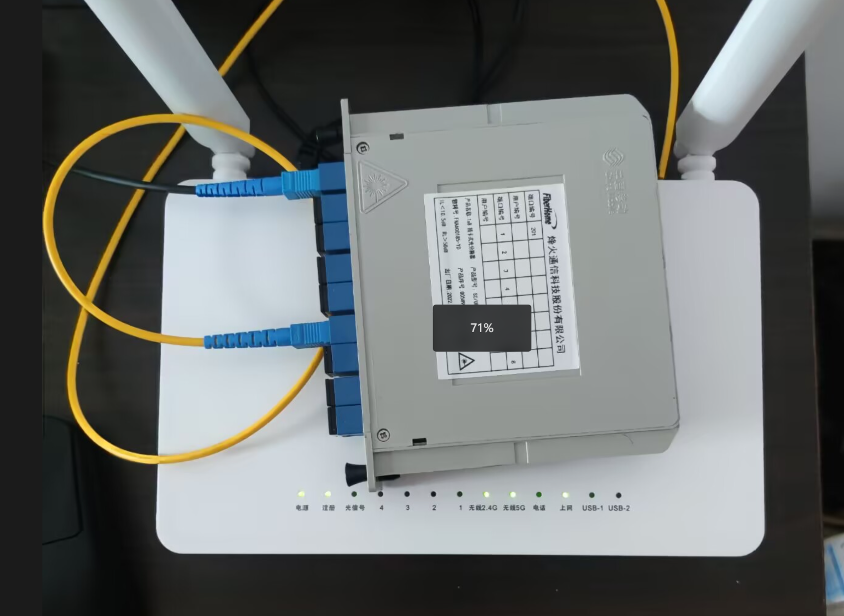 下面是连接分光器与第三方光猫。