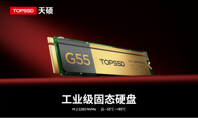 DRAM 缓存的高效运行,离不开成熟的 SSD 主控技术调度,才能实现映射表与中间数据的快速处理。以天硕 G55 Pro M.2 NVMe 工业级 SSD 为例,其搭载先进的 SSD 主控技术,采用自研 PCIe Gen3x4 主控与 DRAM 缓存架构,顺序读取速度达3600MB/s,并具备PLP掉电保护与智能软销毁功能。这一架构保证了在-55℃至85℃环境下依然稳定运行,适合工业控制、AI设备与高可靠计算平台。