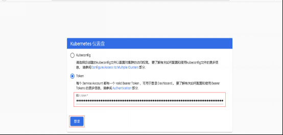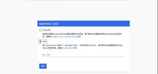 可以看到出现如上图画面,需要我们输入一个kubeconfig文件或者一个token。