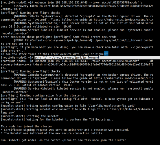 [root@k8s-master ~]# echo "1" > /proc/sys/net/ipv4/ip_forward