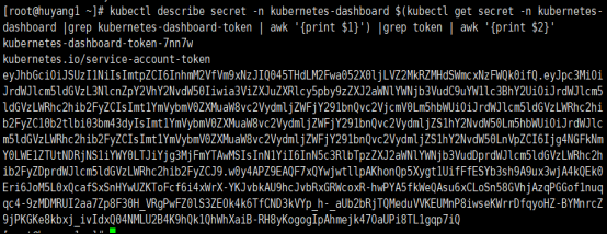 [root@k8s-master ~]# kubectl describe secret -n kubernetes-dashboard $(kubectl get secret -n kubernetes-dashboard |grep kubernetes-dashboard-token | awk '{print $1}') |grep token | awk '{print $2}'