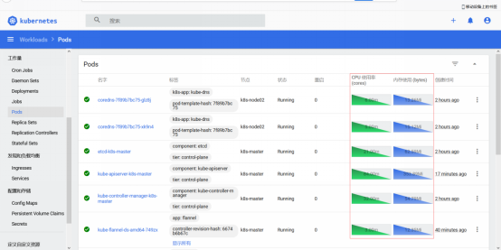 再回到dashboard界面可以看到CPU和内存使用情况了