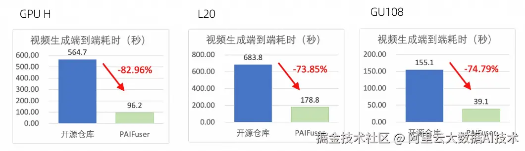 针对扩散模型(Diffusion Models),尤其是 DiT(Diffusion Transformer)架构,paiFuser 通过高性能一体化训练与推理加速框架,有效解决高计算复杂度、显存消耗大、实时性不足等问题。结合 PAI 平台的灵活、稳定、易用和高性能的训练/推理环境,在数千卡集群,训练场景达到了40%+的 MFU;在单机8卡条件下,推理场景生成时间最高减少80%+。